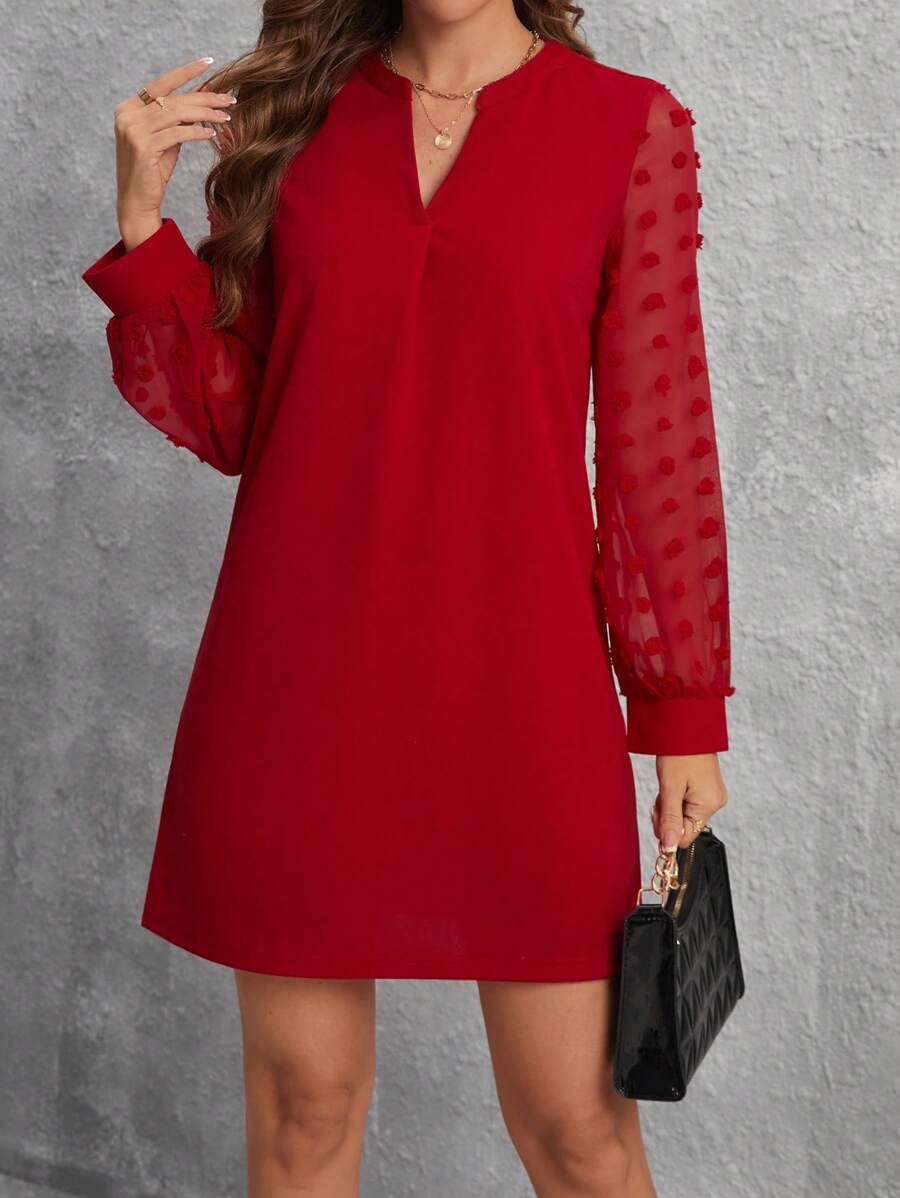 SHEIN LUNE Notched Neck Floral Jacquard Long Sleeve Dress