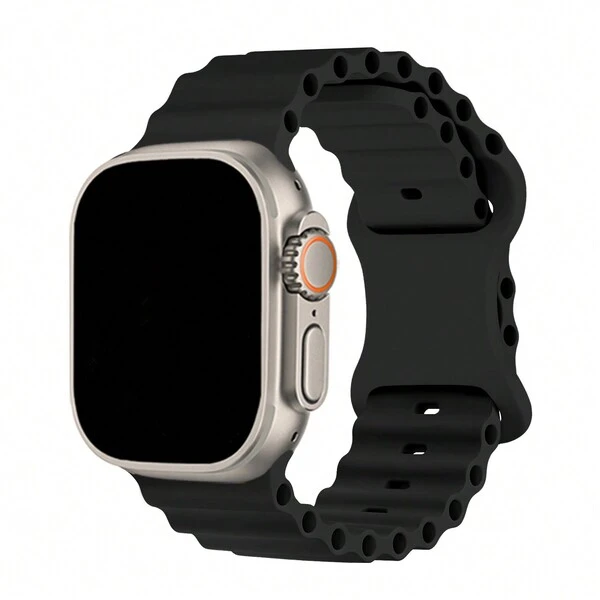 Ocean Strap For Apple Watch Band Ultra 49mm 45mm 44mm 40mm 41mm 42mm 38mm 40 44 Silicone Correa Bracelet Series 7 6 Se 8 9 ,Black
