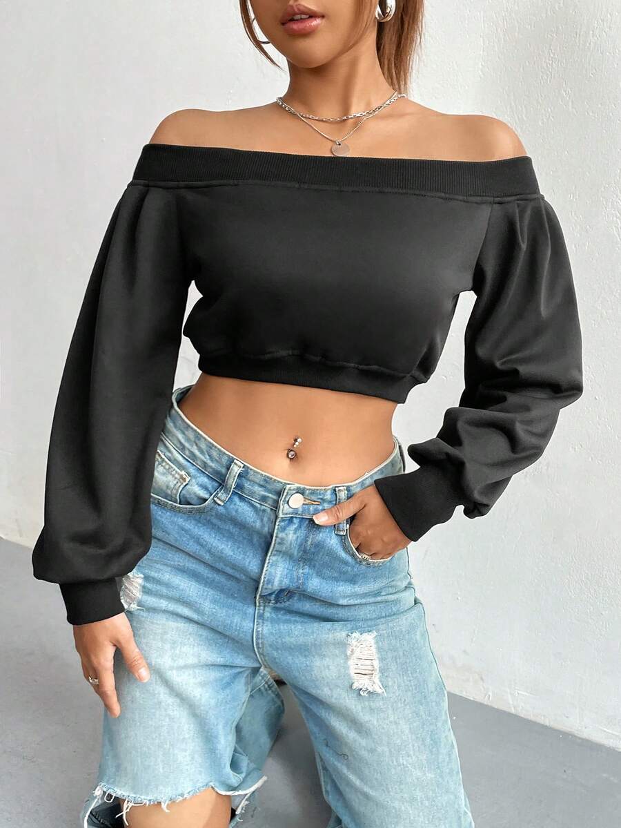 SHEIN Essnce Off Shoulder Crop Sweatshirt
