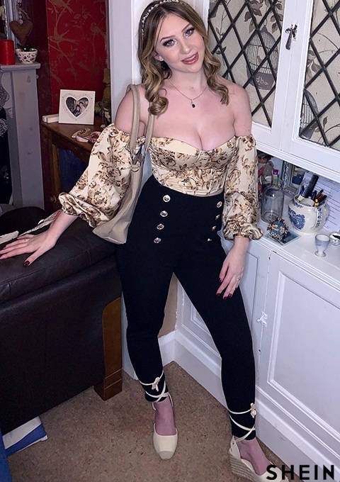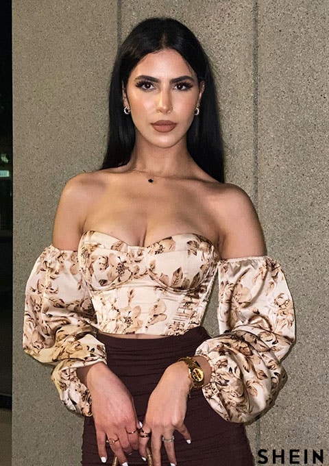 SHEIN SXY Off Shoulder Floral Print Lantern Sleeve Crop Top