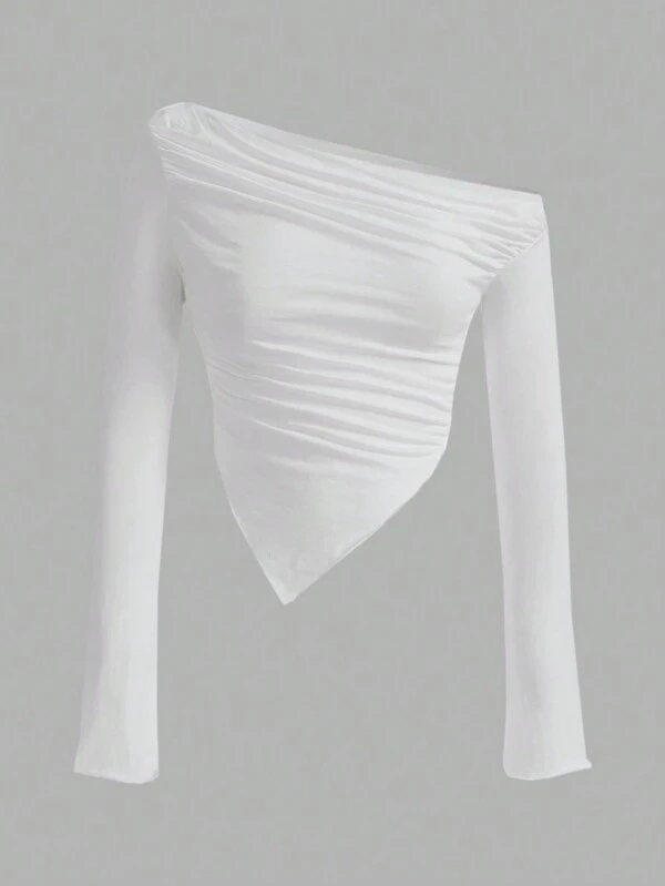 SHEIN ICON Off Shoulder Ruched Hanky Hem Tee