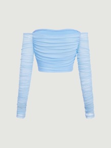 SHEIN MOD Off Shoulder Ruched Mesh Top