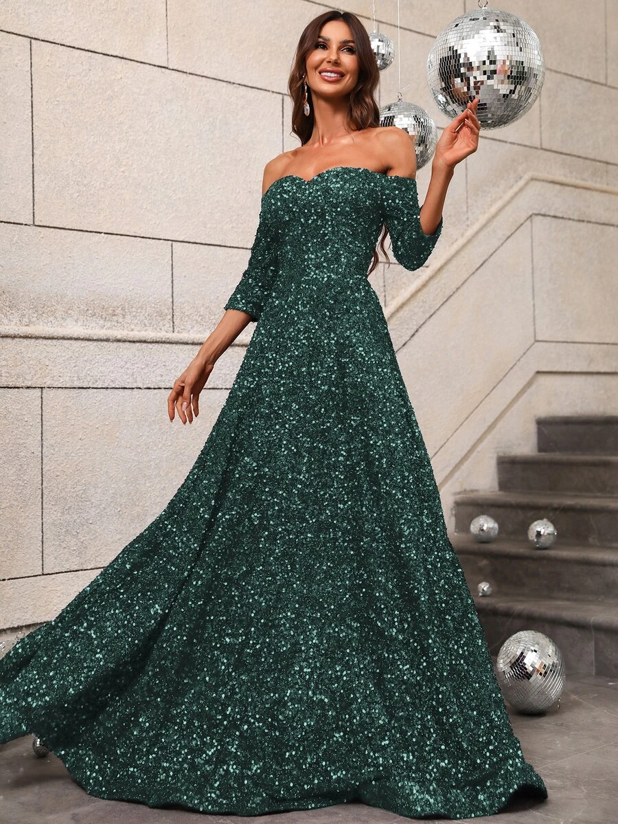 Off Shoulder Sequin Prom Dress