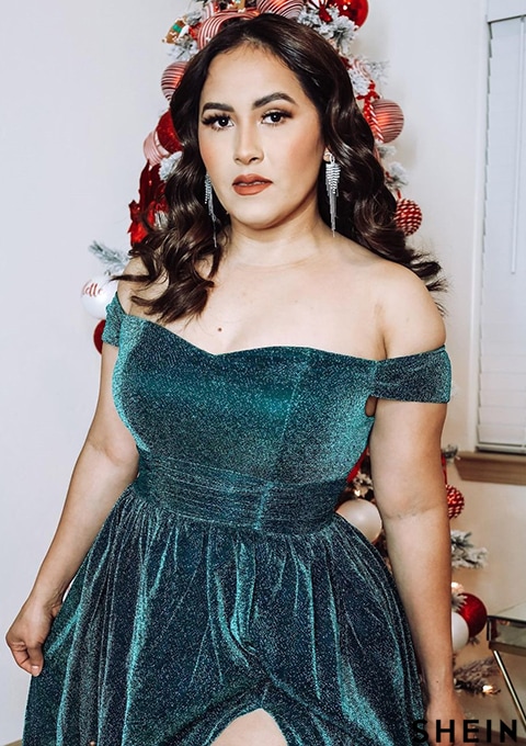 Off Shoulder Split Thigh Glitter Bridesmaid Dress