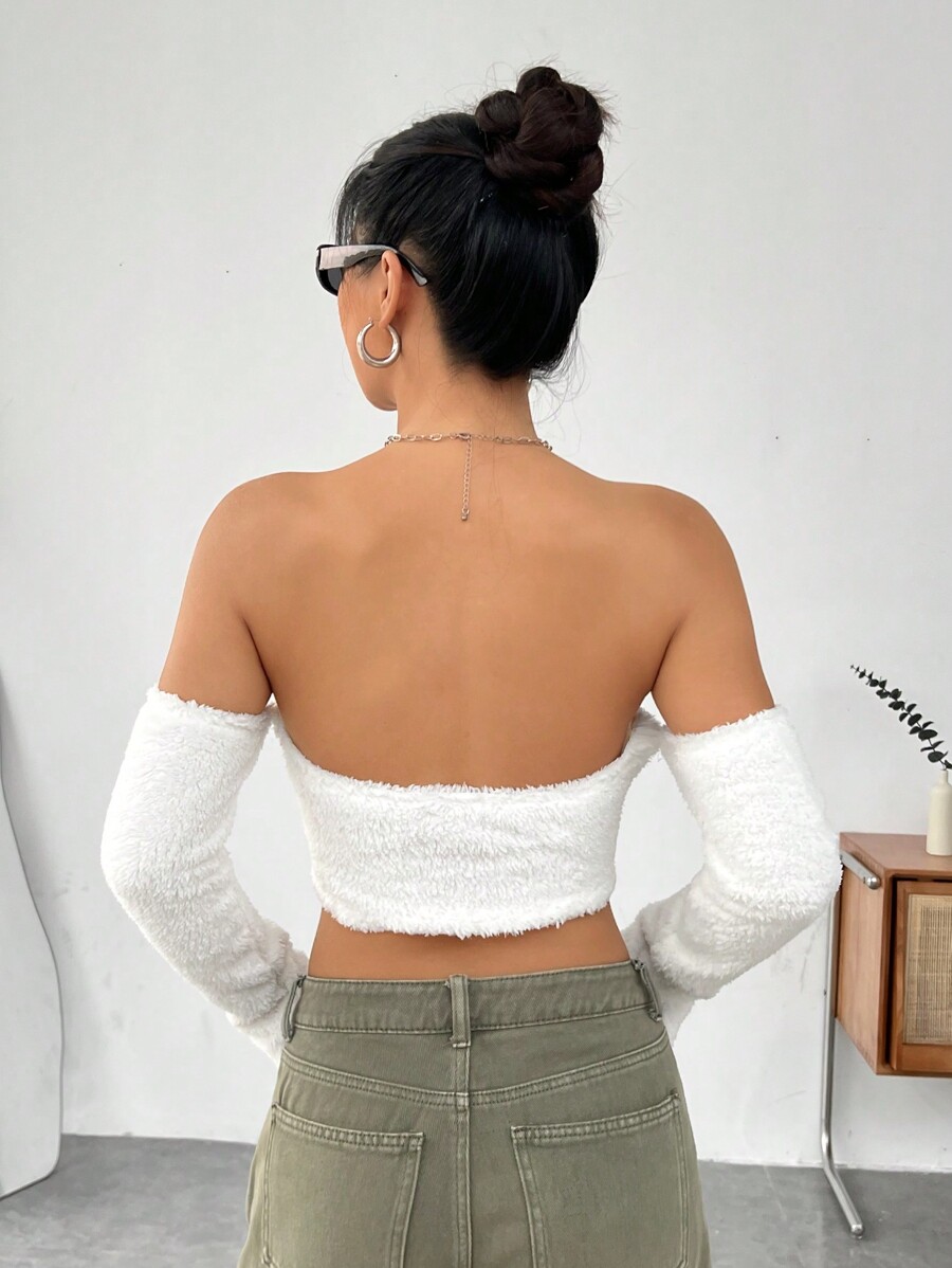 SHEIN EZwear Off Shoulder Teddy Crop Top