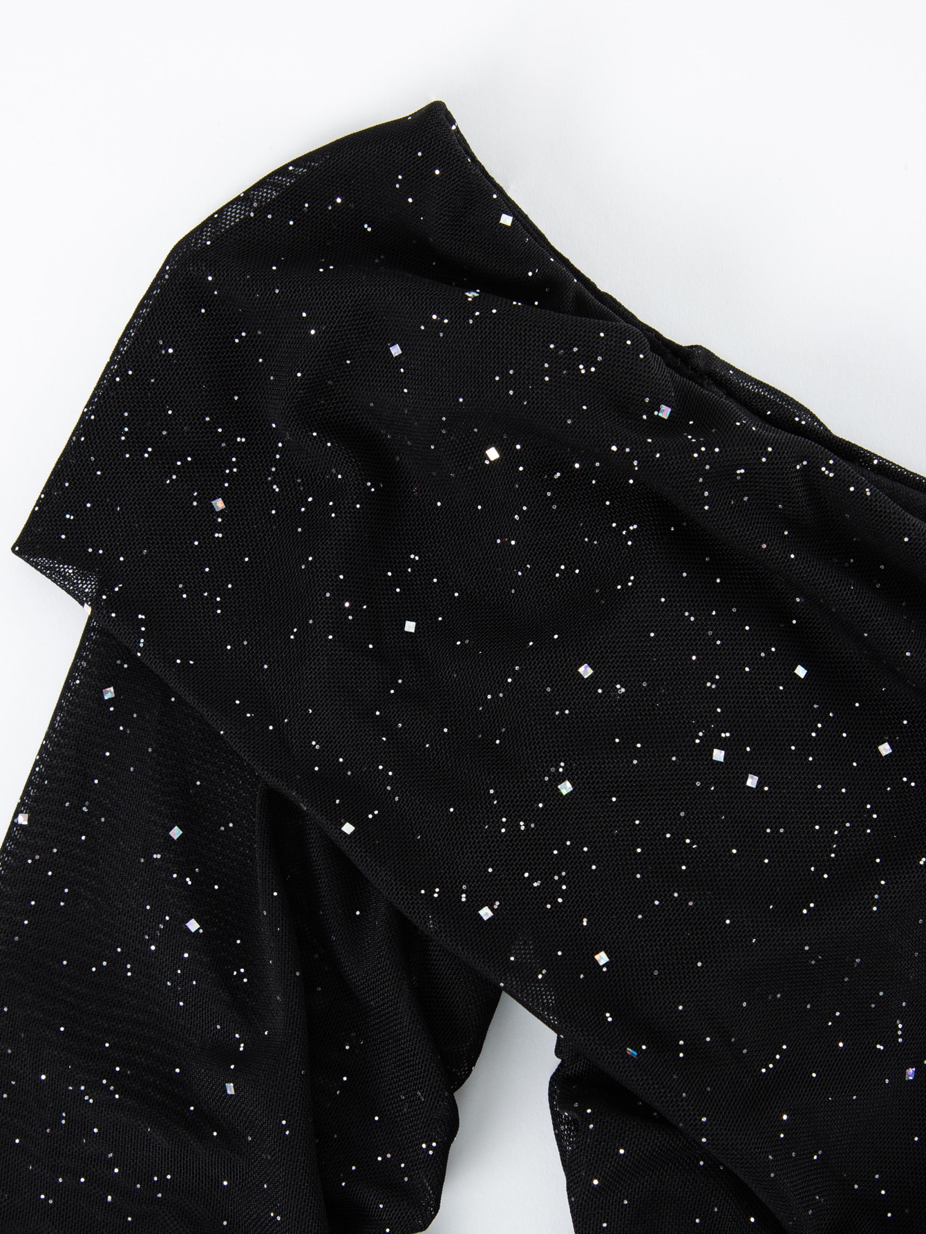Joyfunear Off Shoulder Wrap Ruched Glitter Dress
