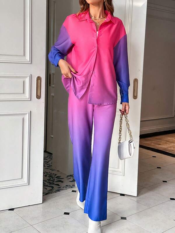 SHEIN Essnce Ombre Drop Shoulder Shirt & Wide Leg Pants