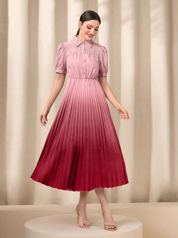 SHEIN Mulvari Ombre Pleated Hem Shirt Dress