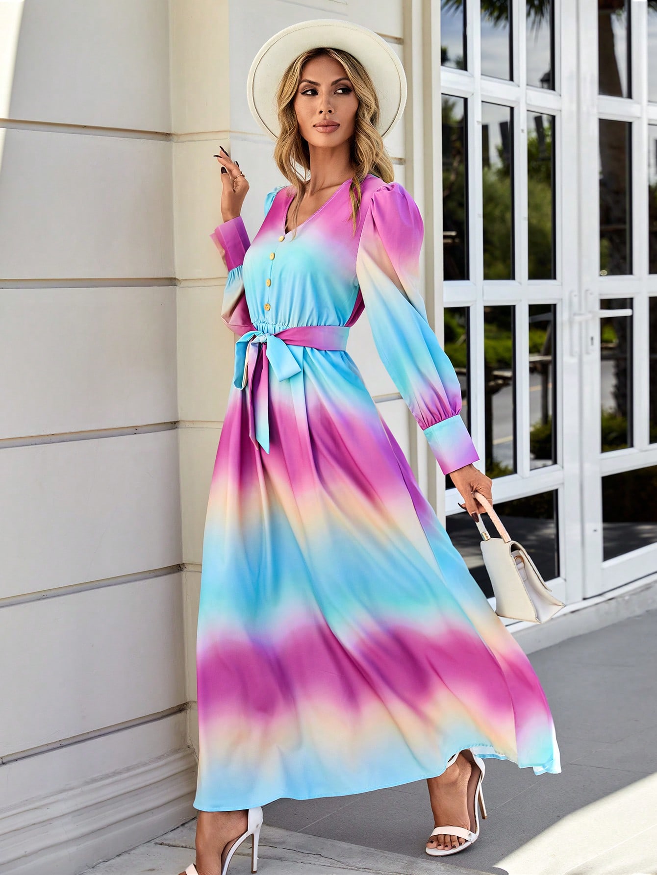 SHEIN VCAY Ombre Print Belted A-line Dress