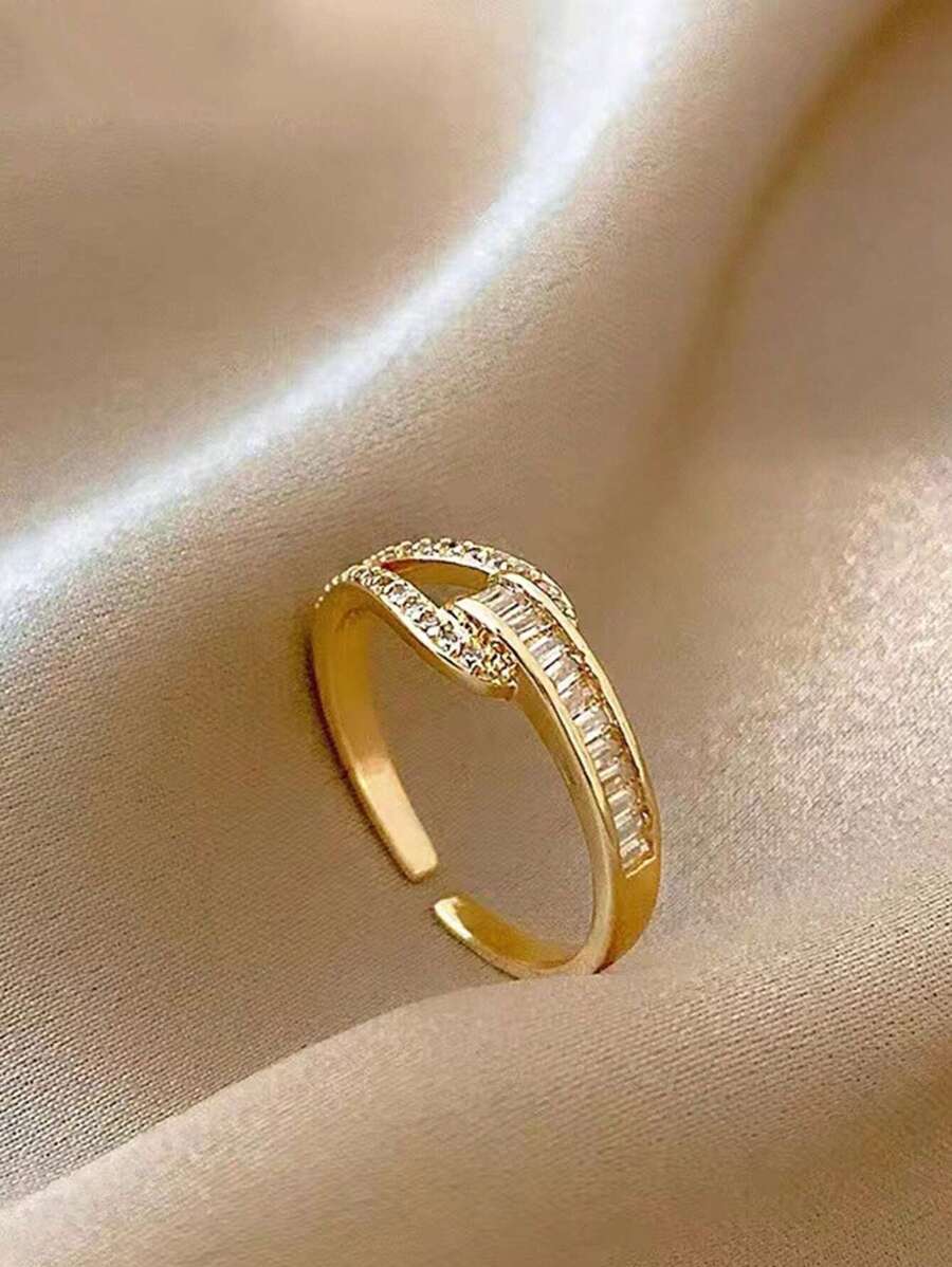 One 2024 Spring Recommended, Minimalist Design Copper-Plated Ring With Cubic Zirconia & Step Cut Zirconia Decoration, Suitable For Women'S Banquet/Nightclub/Daily Wear
