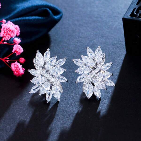 One Pair Stunning Bridal Wedding Accessories Pave Marquise Cubic Zirconia Flower Clip Earrings Without Piercing Women Jewelry For No Hole Ear