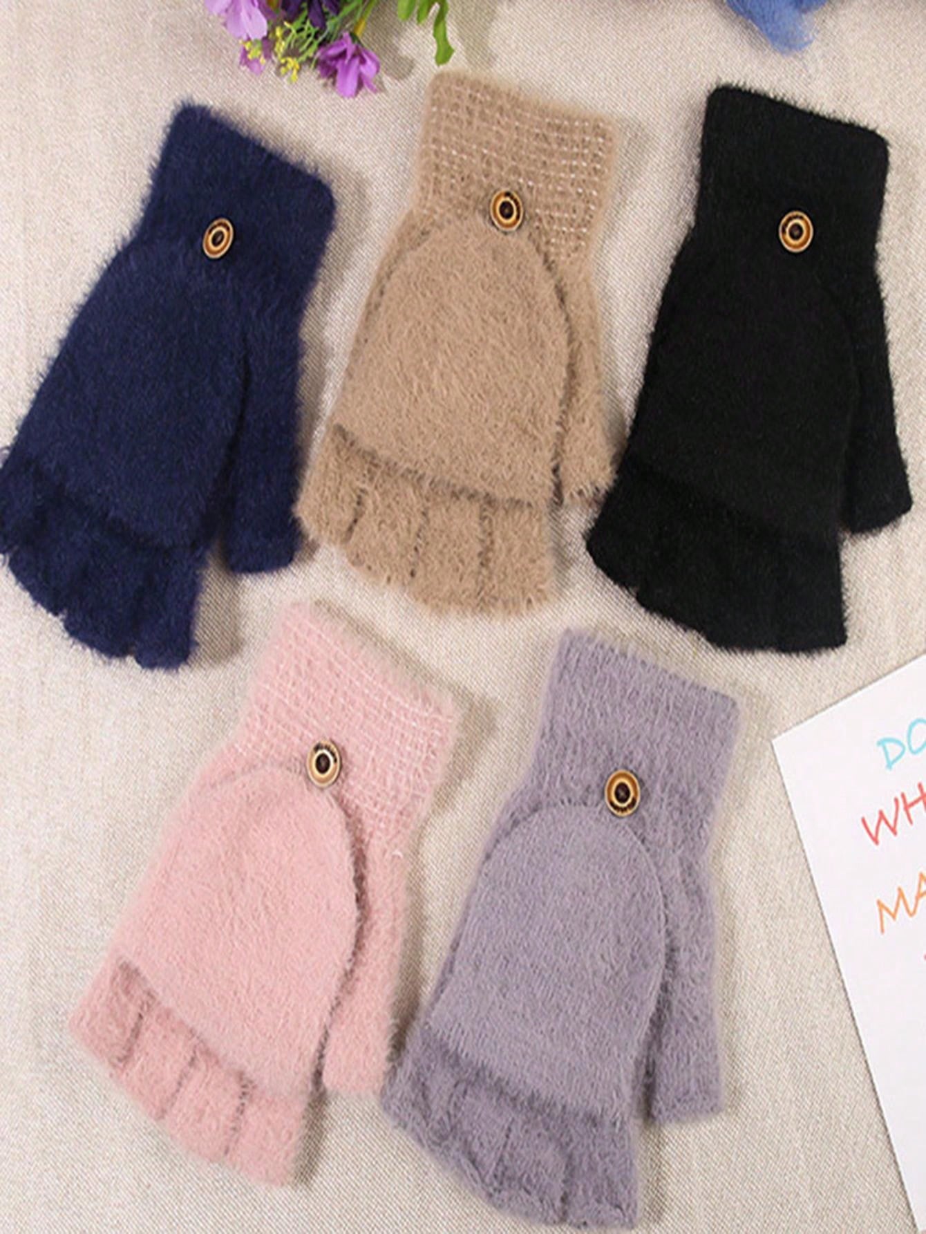 One Pair Unisex Solid Color Thickened Faux Cashmere Warm Gloves For Autumn/winter, Suitable For Outdoor Activities And Office Work