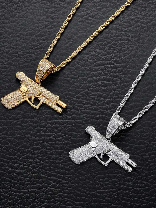 One Piece Hiphop Cubic Carved Gun Pendant Necklace For Men Gift