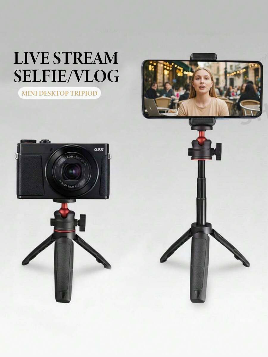 Mini Aluminum Alloy Selfie Stick Tripod, Tabletop Phone Holder With Handle, Can Be Handheld Or Placed On The Ground. Suitable For Webcams, Canon G7X Mark III, ZV-1, RX100 VII, A6400, A6600 And Other Cameras - Optional Phone Holder Fits Various Smartphones. Portable Mini Vlog Stand, One-Button Pop-Up, Adjustable Legs, Rubber Feet For Stability, Outdoor Sports Stand, Selfie Accessory, Valentine's Day Couples Photography Tool