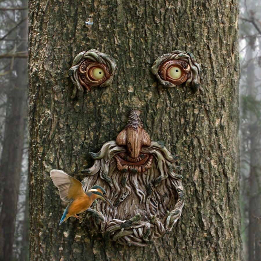 One Piece Outdoor Tree Face Pendant Garden Creative Facial Features Garden Tree Root Bird Feeder