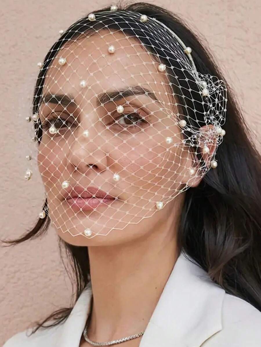 One Piece White Pearl Bridal Birdcage Veil, Charming Bride's Hat, Women's Mask, Wedding Headband, Suitable For Weddings, Proms, Banquets, Birthdays, Etc. Fall Clothes For Women