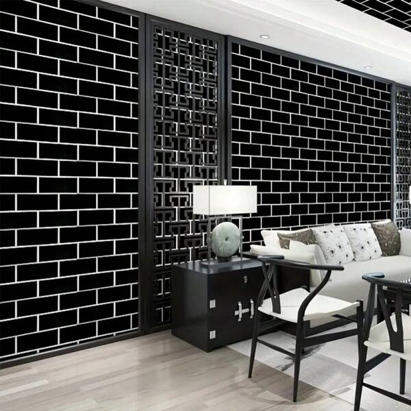 One Roll Of Black And White Brick Pattern Self-adhesive Removable Pvc Wallpaper, Waterproof And Oil-proof Contact Paper, Suitable For Kitchen Bedroom Living Room Countertop Furniture, Decoration Wallpaper, Home Decoration And Furniture Renovation