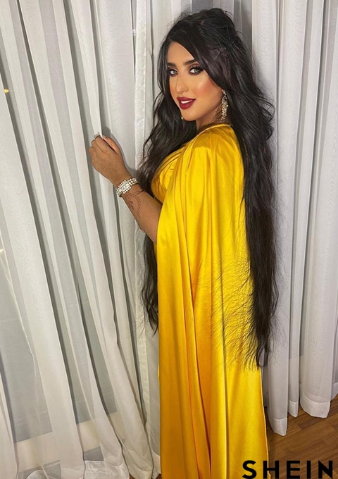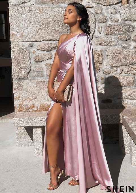 SHEIN Belle One Shoulder Cloak Sleeve Wrap Hem Solid Bridesmaid Dress