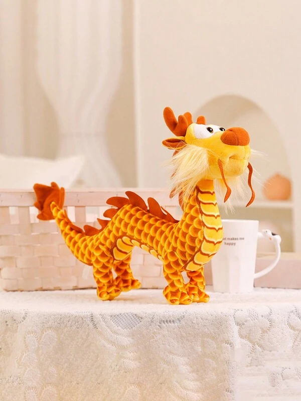 Orange Chinese Dragon Plush Toy Pet Game Doll, Chinese Dragon Stuffed Animal Plush Toy, Soft & Furry, Pp Filling, Suitable For 14+ Years Old As Birthday, Festival Gift, Desktop & Sofa Pillow Ornaments