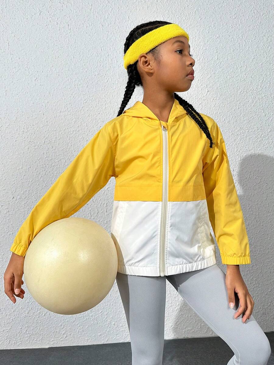 Outdoor Multisport Girls' Hooded Windbreaker, Wind&water Resistant With Zipper Closure Pockets, For Hiking, Climbing, Cycling, Running, Training, Etc.