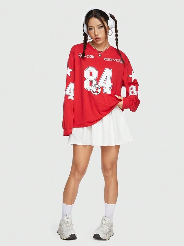 ROMWE Street Life Outdoor Streetwear Vintage Sports Style Loose Fit Printed T-shirt