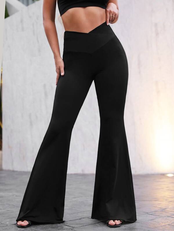 SHEIN Privé Overlap Waist Flare Leg Pants