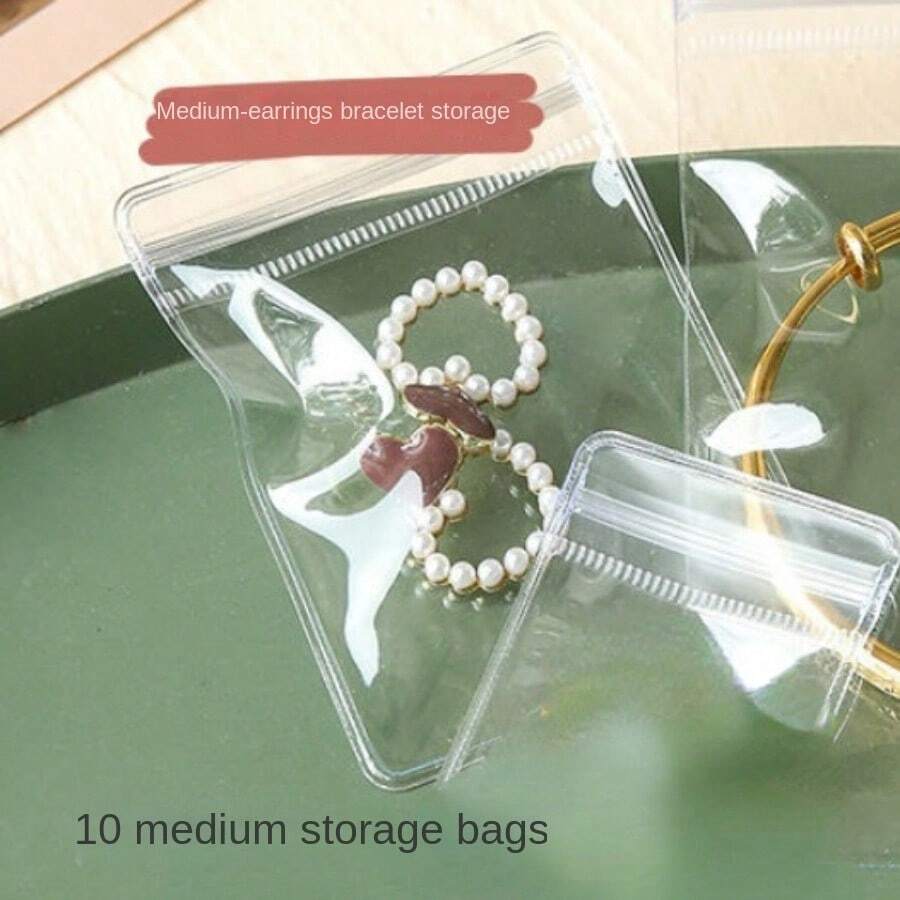 Oxidation-Proof Jewelry Box For Earrings, Eardrops, Necklaces And Bracelets, Portable Transparent Storage Bag For Rings And Small Items, 10pcs/Pack