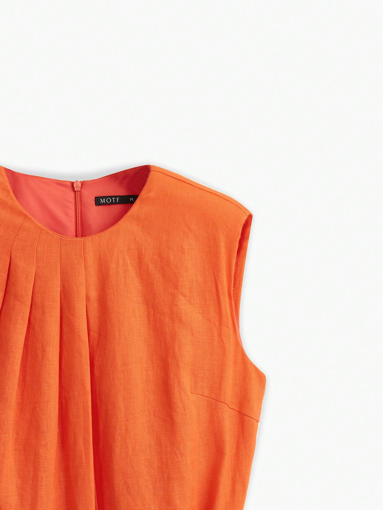 MOTF PREMIUM PURE LINEN CHAIN BELT DRESS