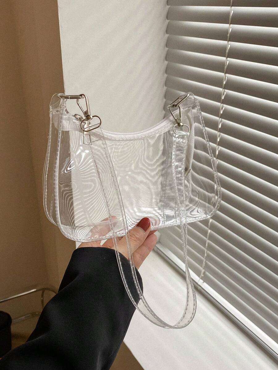PVC Hobo Bag Clear Zipper Stadium Approved 12*12*6 Clear Transparent Purse Bag For Concerts Sports Events Festivals ,Trendy Transparent, Clear Waterproof Bag For Women, Perfect For Summer, Vacation & Beach