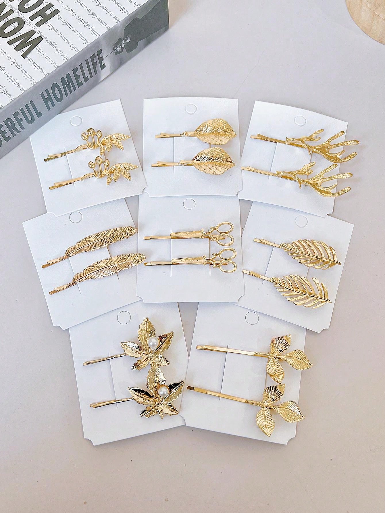 Pack Of 2, Elegant, Simple, Versatile, Casual One-Line Clip, Metal Leaf Scissors, Antler Bangs Clip, Side Clip For Daily Use