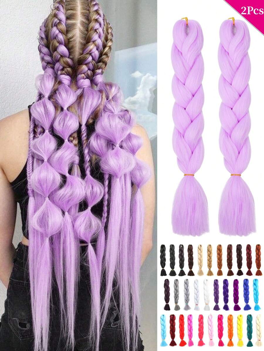 Pack Of 2 Large Light Purple Braiding Hair 24Inch Suitable For Women Daily Holidays And Cosplay Braided Wear Fashion Halloween And Christmas Synthetic Hair Crochet Hair Extensions Useful And Deft High Temperature Hair