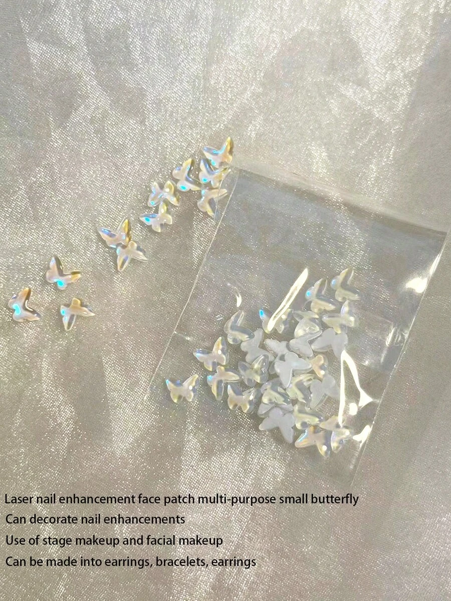 Pack Of 25 In A Bag Including Approximately 5g Of Packaging Resin Material Laser Nail Enhancement Face Patch Multi-Purpose Small Butterfly Can Decorate Nail Enhancements Can Perform On Stage And Decorate The Face You Can DIY Your Own Earrings, Necklaces, And So On Taking Photos Can Be Used As Decorations Can Be Used As A Phone Case Decoration Manual Decoration When Girls Tie Braids, They Can Be Used As Hair Decorations Both Children And Adults Can Use It It Can Also Be Given As A Gift To Others The Surface Laser Color Will Give People A Feeling Of Brightness Before Their Eyes Good Quality And Affordable, Very Worth Buying