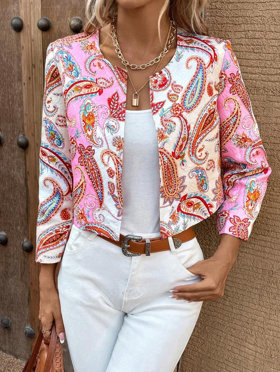 SHEIN Clasi Paisley Print Open Front Jacket