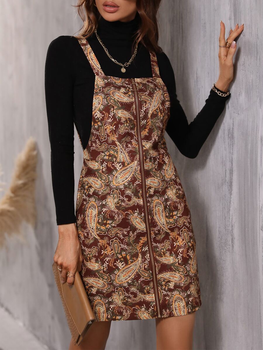 SHEIN Unity Paisley Print Zip Up Overall Dress