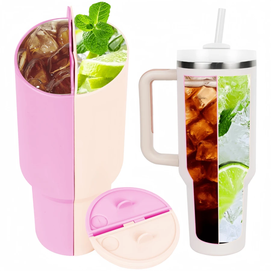 Palrey 2-In-1 Reusable Divider Insert For 40oz Tumbler, Silicone Double Sided With Lid, Beverage Separator, Easy To Clean, Perfect For Party, Office, Indoor And Outdoor Use, Best Gift