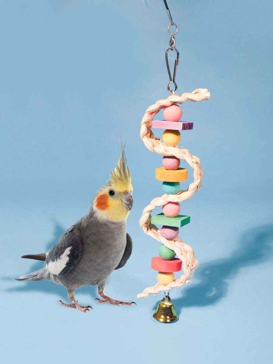 Parrot Bite Toy (Random Accessory Color) Natural Corn Skin Wooden Bite String Toy
