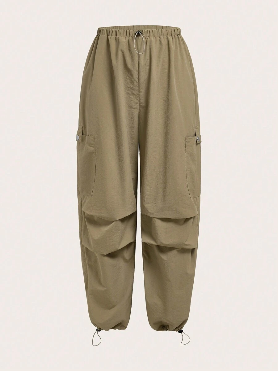 SHEIN EZwear Patch Pocket Side Drawstring Waist Pants