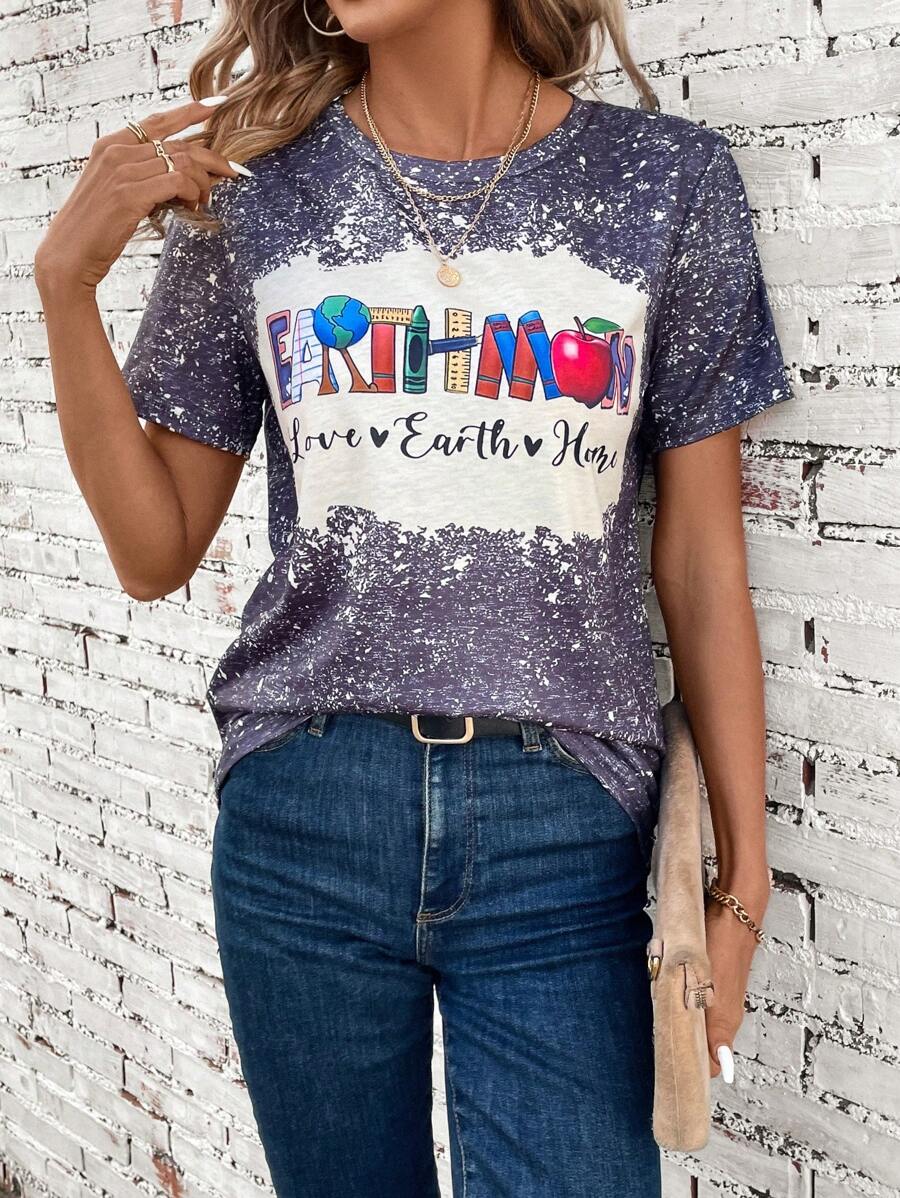 SHEIN LUNE Pattern Printed Round Neck T-Shirt