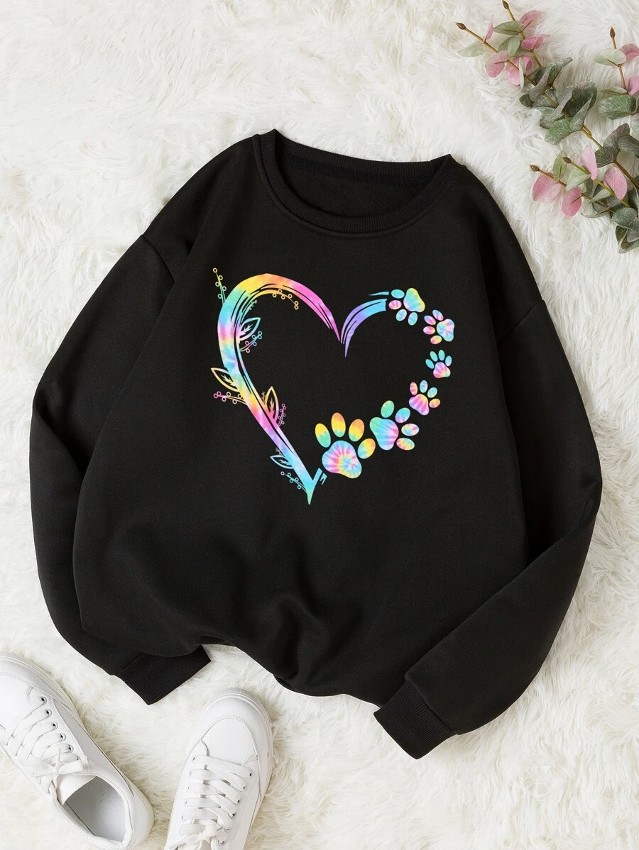 SHEIN LUNE Paw & Heart Print Thermal Lined Sweatshirt