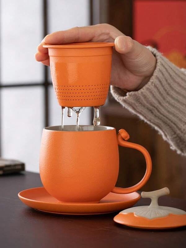 Persimmon-Shaped Ceramic Cup With Tea Separation Function, Ideal For Personal Office Use, High-End Gift Set For Tea Lovers