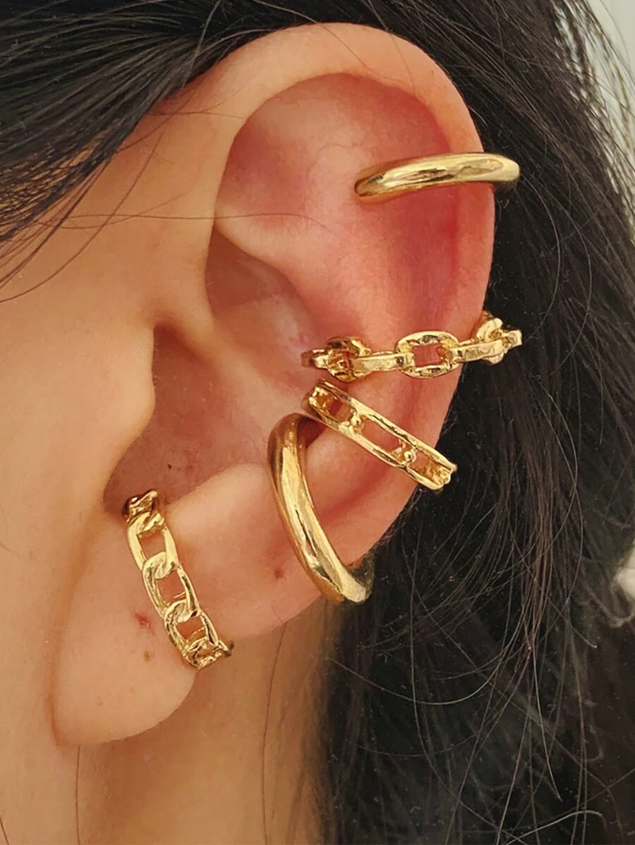 Personalized Gold Leaf Hollow Multi-layer Earrings C-shaped Ear Clips Creative Simple Non-pierced Ear Bone Clips Five-piece Set