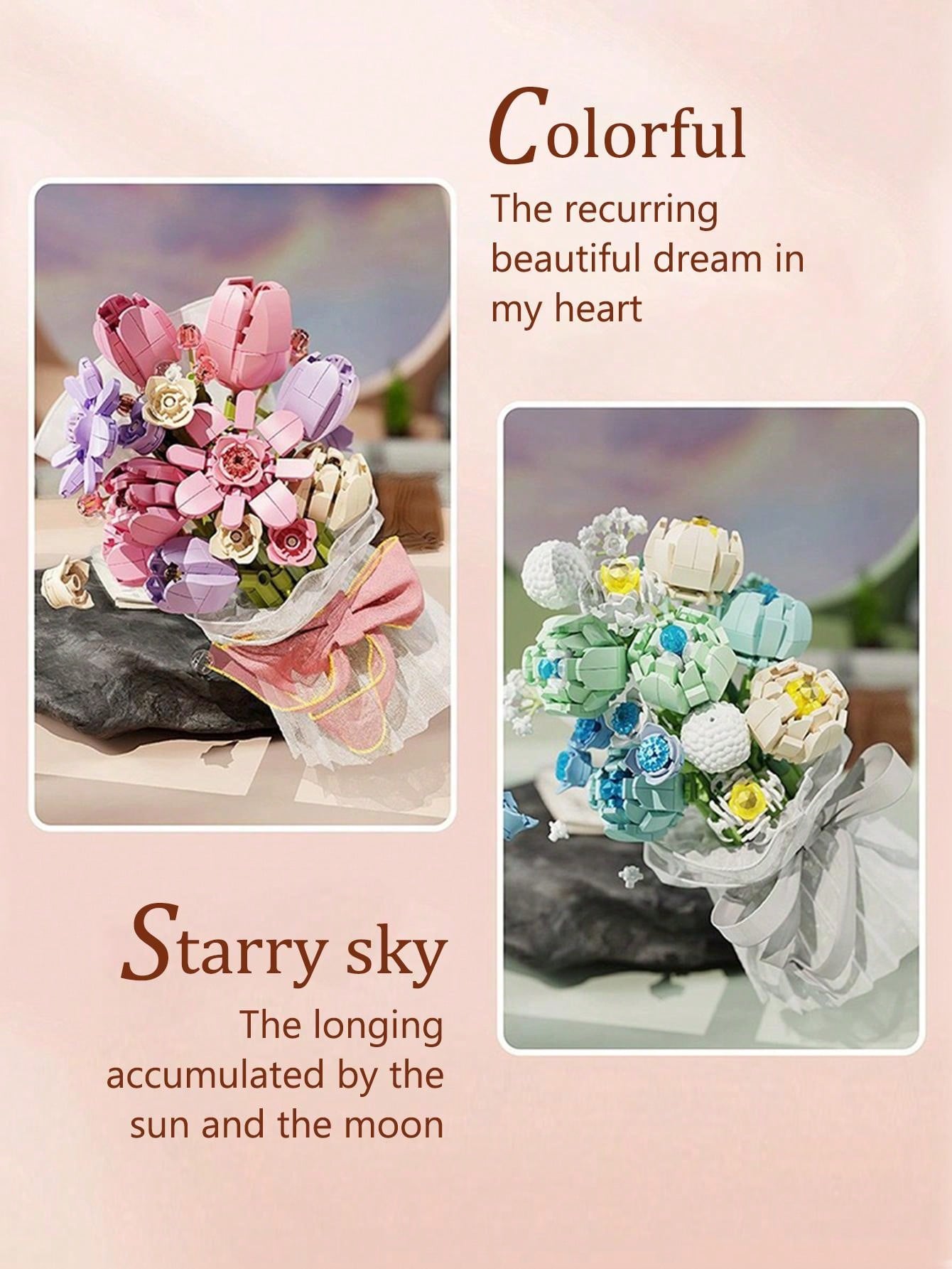 Picture Frame Bouquet, Rose Blocks, Various Preserved Flower Themed Building Blocks, Valentine's Day Gift, Creative Home Decor
