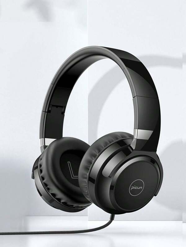 Picun C60 Wired On-Ear Headphones With Microphone, Lightweight Foldable & Portable Stereo Bass Headphones With 1.5M No-Tangle, Wired Headphones For Smartphone Tablet MP3 / 4 (Space Black)