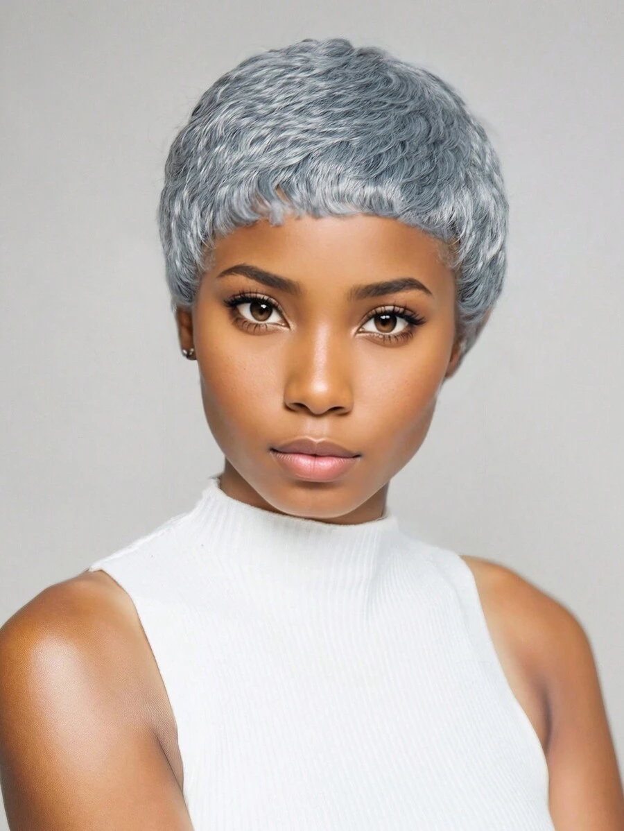Pixie Cut Wigs Synthetic Short Pixie Hair Cut Wig With Bangs Glueless Layered Synthetic Wig Wavy Grey To Black Wigs For Women