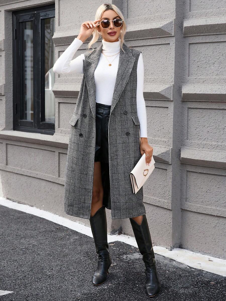 SHEIN BIZwear Plaid Double Breasted Vest Overcoat