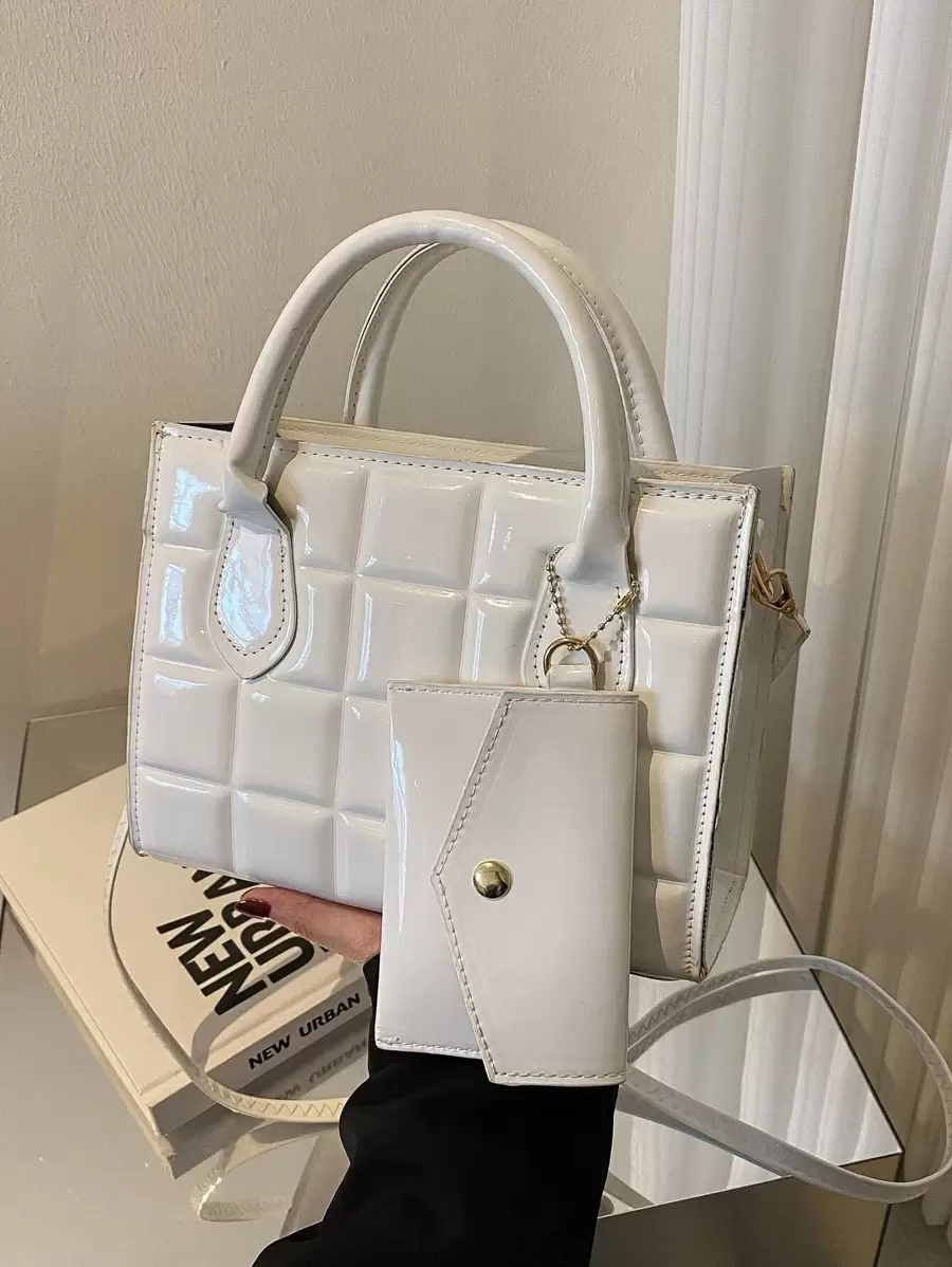 Plaid Embossed Square Bag With Coin Purse , Women Bag With Dime Bag