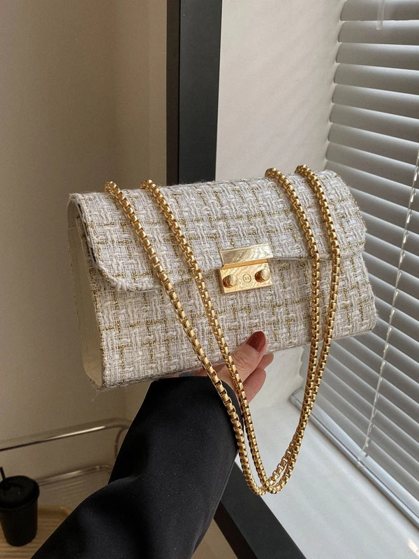 Plaid Pattern Flap Chain Square Bag Mini Fashion Textured Crossbody Bag Trendy Turn Lock Shoulder Bag Women's Elegant Handbag Purse