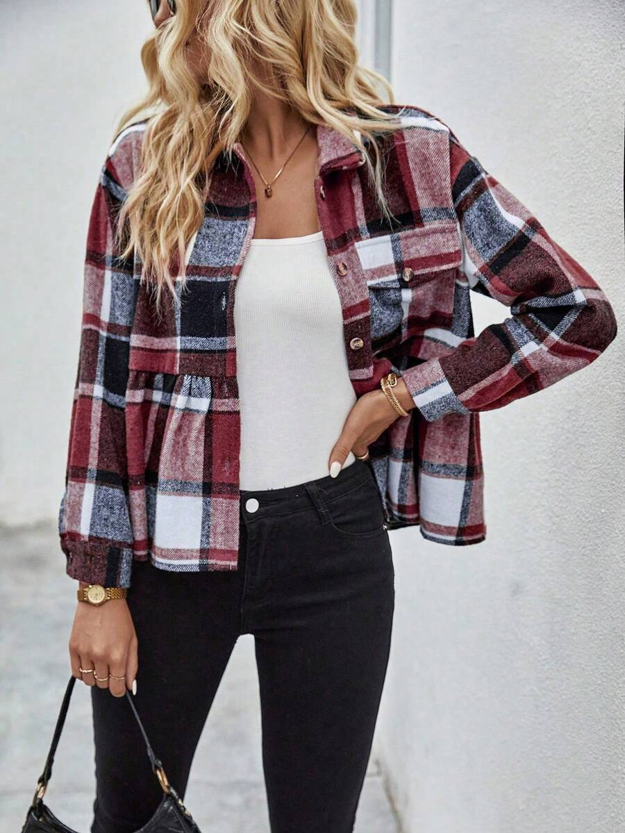 SHEIN Essnce Plaid Print Drop Shoulder Coat