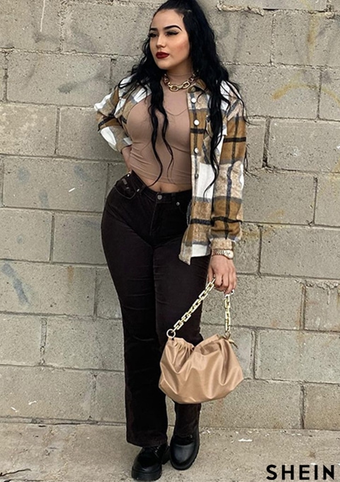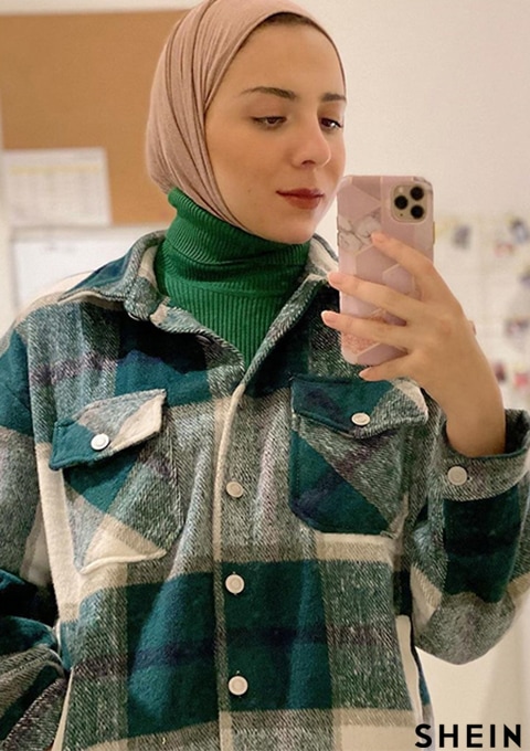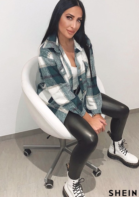 SHEIN Essnce Plaid Print Flap Pocket Overcoat