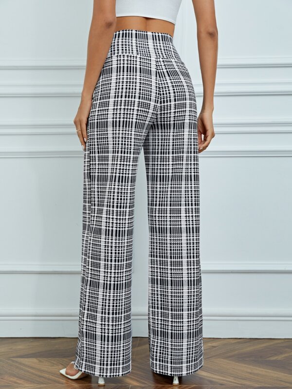 SHEIN Tall Plaid Print High Waist Pants